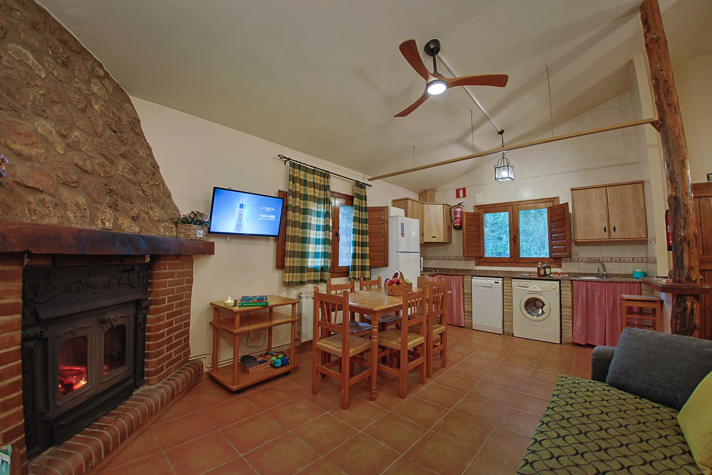 Disfruta del calor de la chimenea, techos de madera y un entorno que invita al descanso.